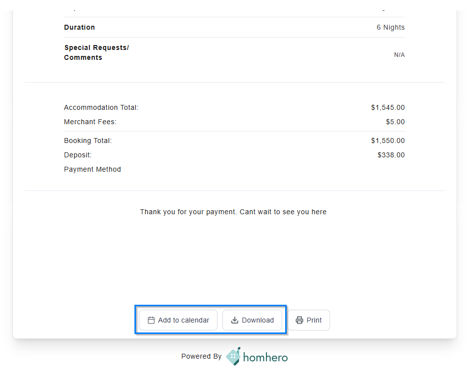 Guests can now add their booking to a calendar and download a PDF of the booking confirmation.