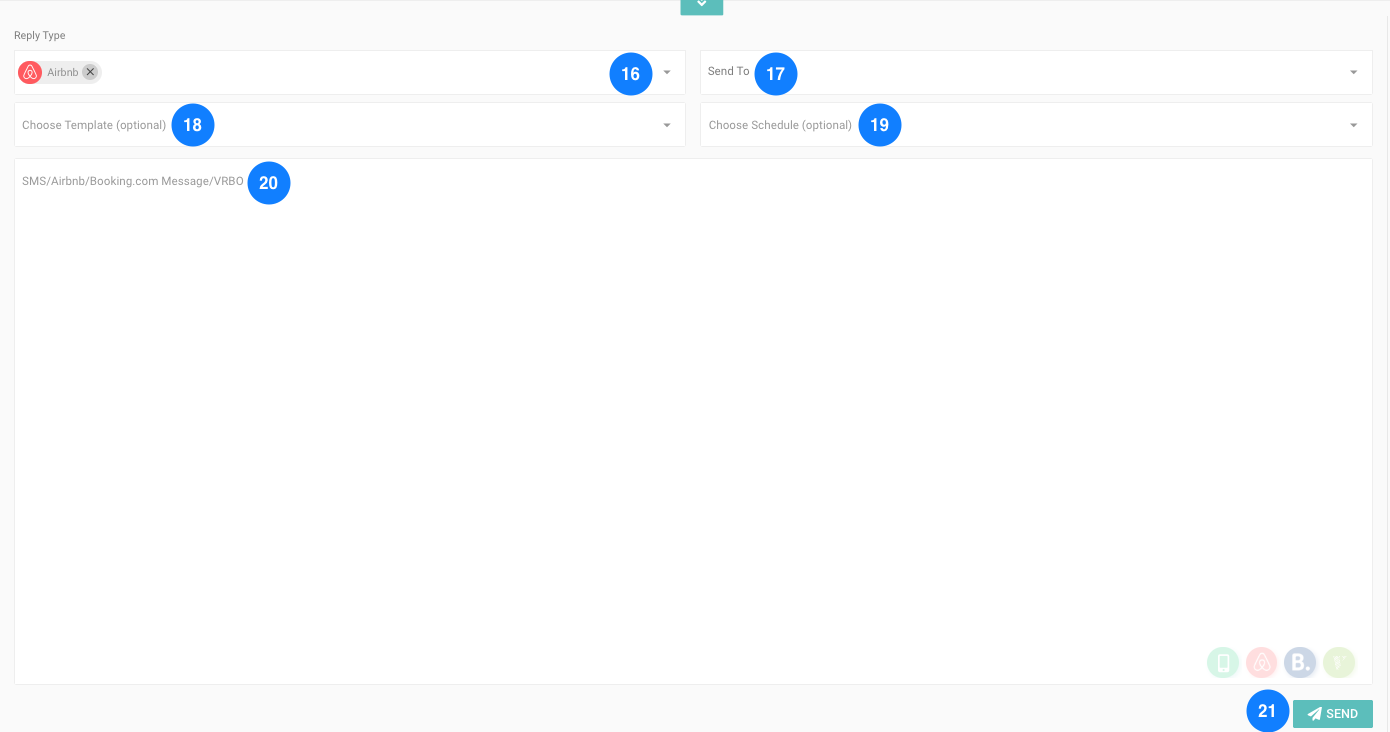 - Send Via - Only applicable for Airbnb.