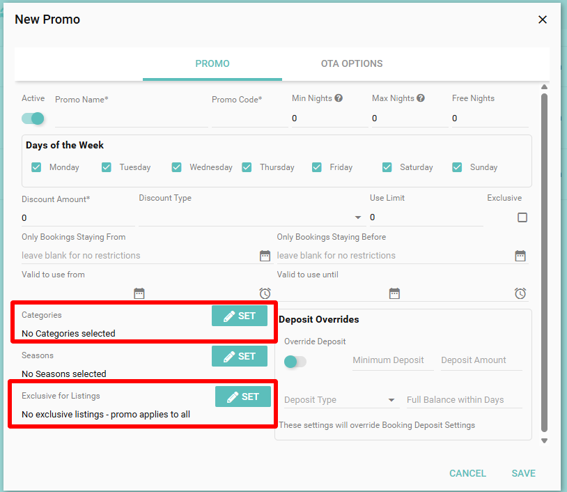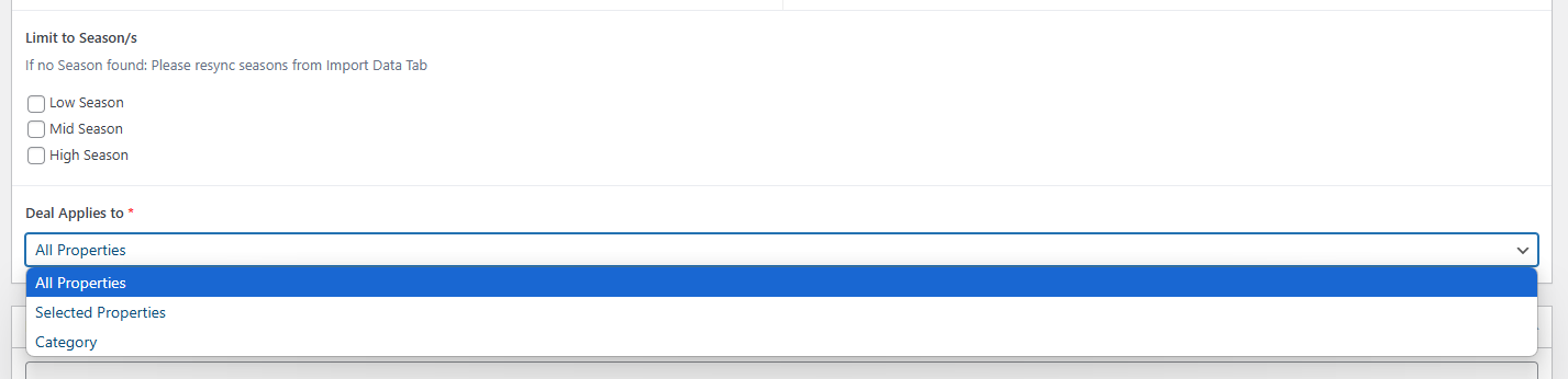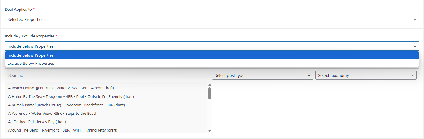 If your Homhero special is restricted either by Categories, or by Exclusive for Listings, use this field to select which, and then you will see further options where you can select the Categories/Listings to match what you have selected in Homhero.