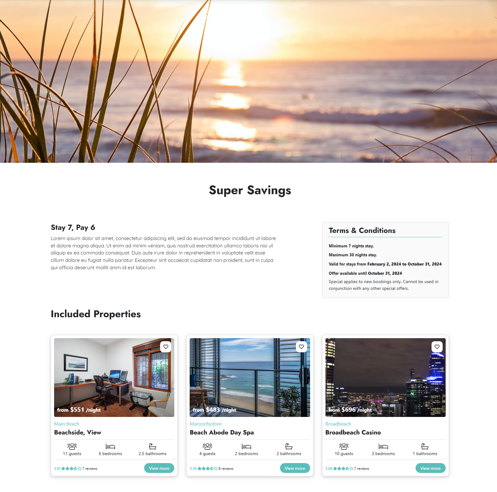 - Description - This is where you would write an enticing description, ideally one or two paragraphs, about the special. Again, you do not need all of the details in here, it is more to sell the idea of a summer escape or a winter getaway or whatever the angle is.