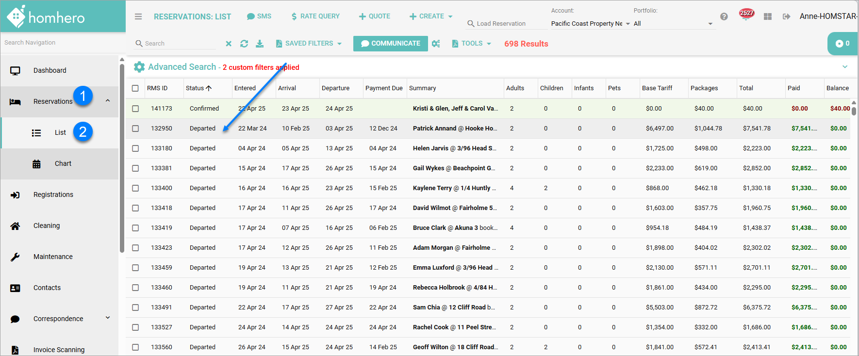 - Check that all bookings departing for the month are fully paid up and have no debit/credit balances as any booking with a balance (credit or debit) will not pay out to the owner.