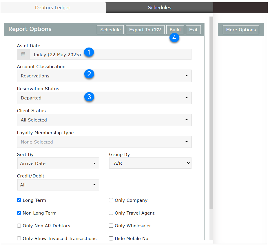 - In RMS in Menu Search type Debtors Ledger and choose Reports + Debtors Ledger
