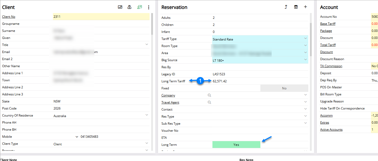 - In all long term reservations in RMS - enter the Total Long Term Reservation Tariff as indicated below