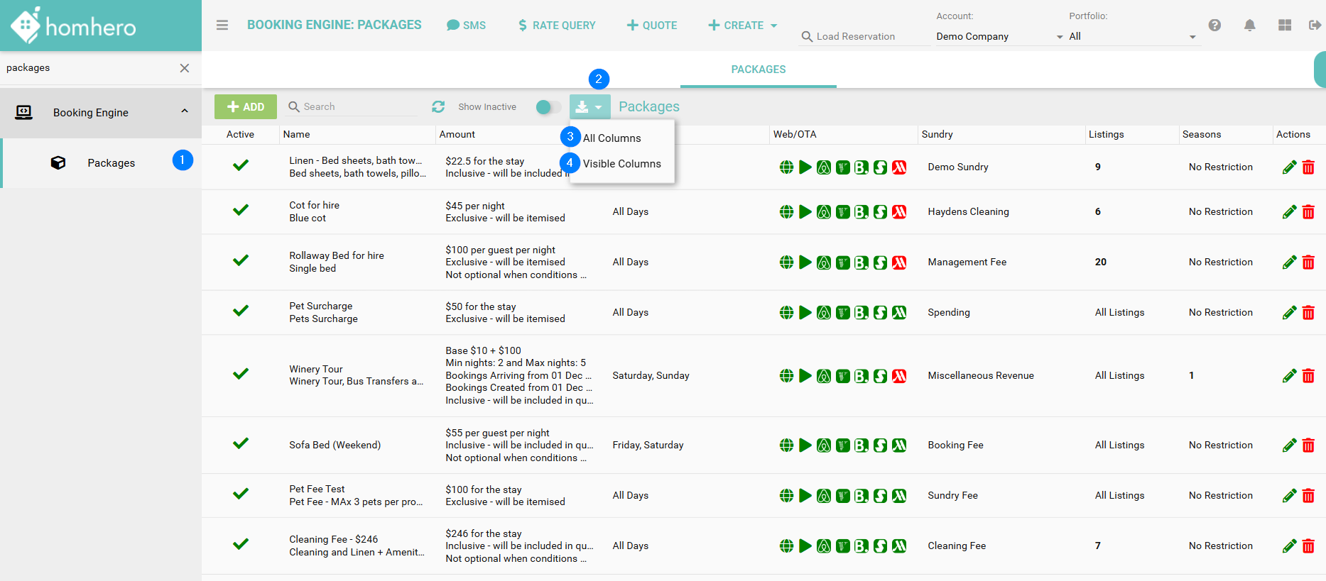 Exporting Packages Eddie July 17, 2025 05:23 Updated To export your package list in Homhero: Navigate to Packages from the Homhero side menu. Select the Export option. Choose All Columns or Visible Columns for the export. Related articles How to create a Package Exporting Portfolios Comments 0 comments Please sign in to leave a comment.