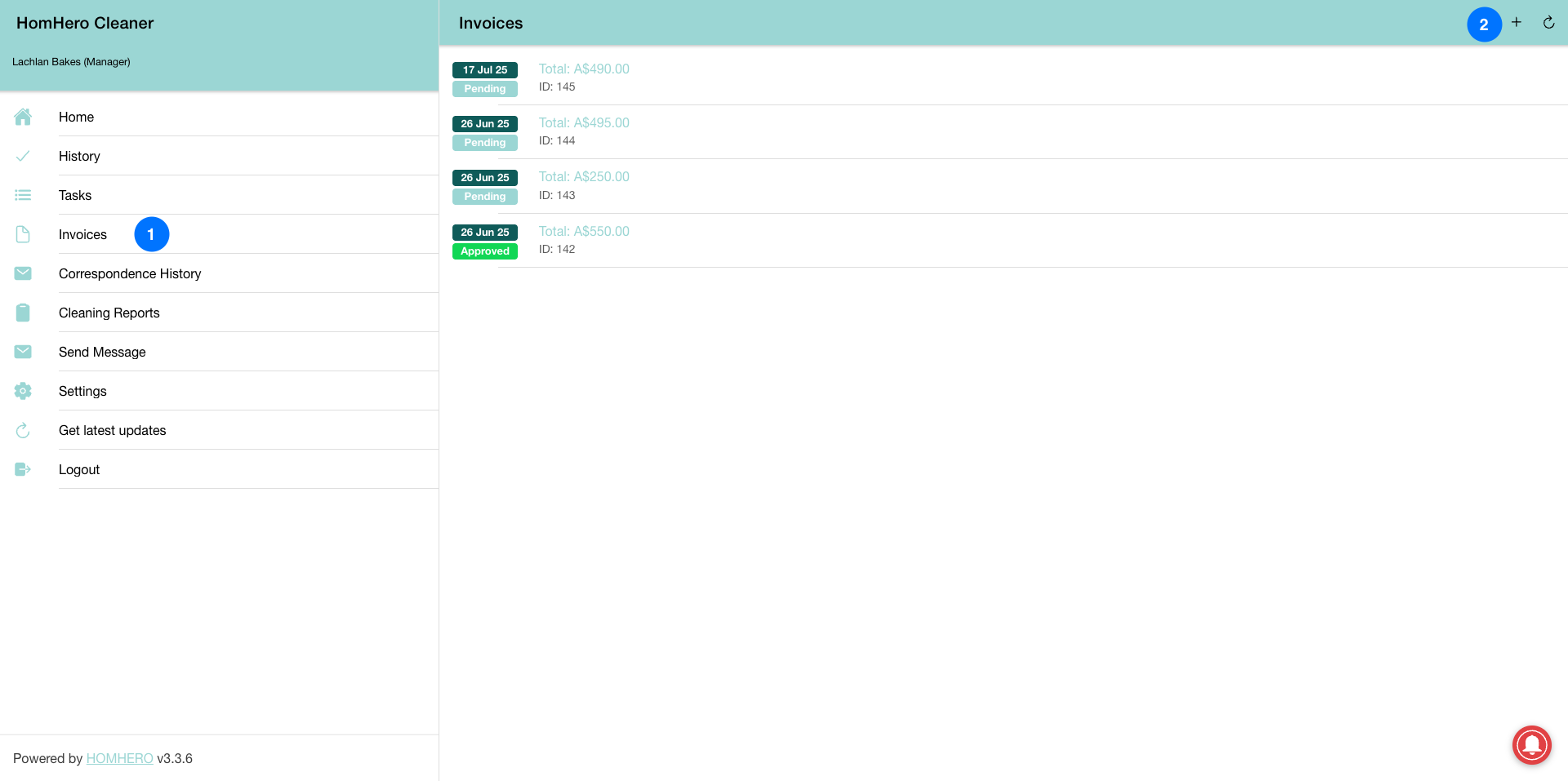 You can use this feature to submit multiple invoices for completed cleaning jobs, track their status, and adjust charges if needed.