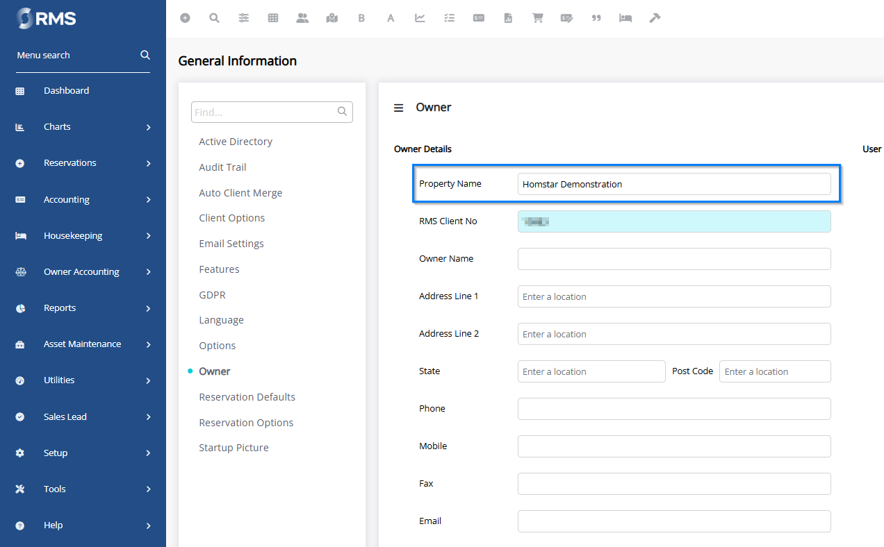 Contact RMS accounts at accounts@rmscloud.com for more information on updating your RMS configuration when business details have changed.