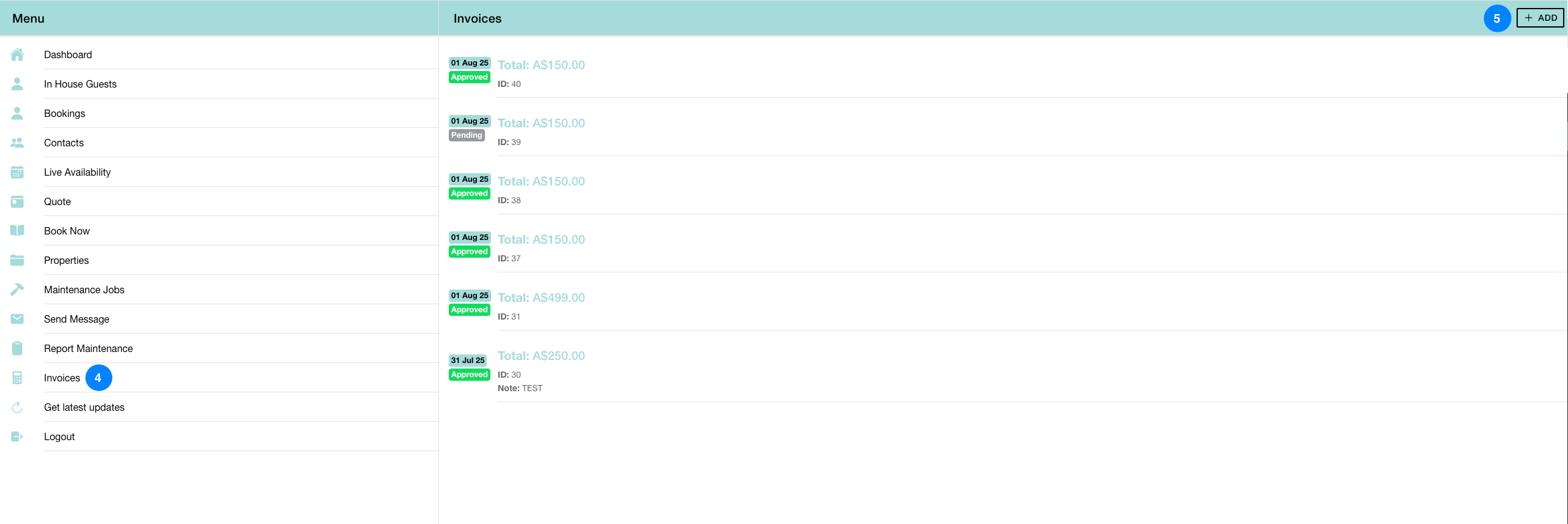 Navigate to the Invoices tab from the left hand side menu in the Staff/Maintenance Portal.