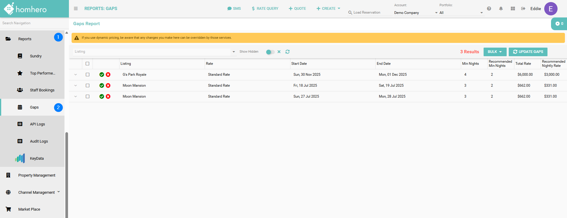 The new Gaps Report will list all of the unbookable gaps for your properties and give you actionable items to remove these restrictions without compromising the pricing needed to accept that booking.