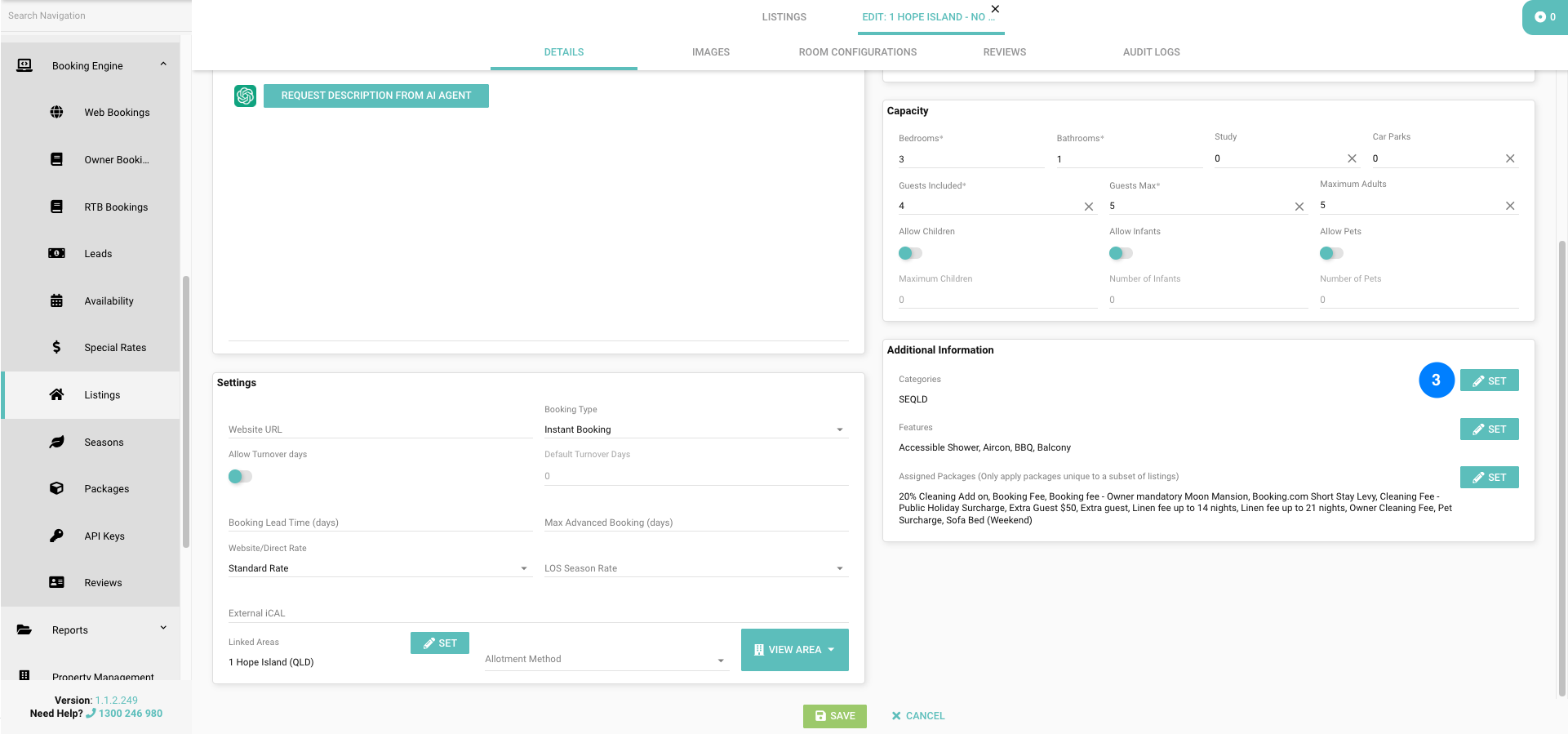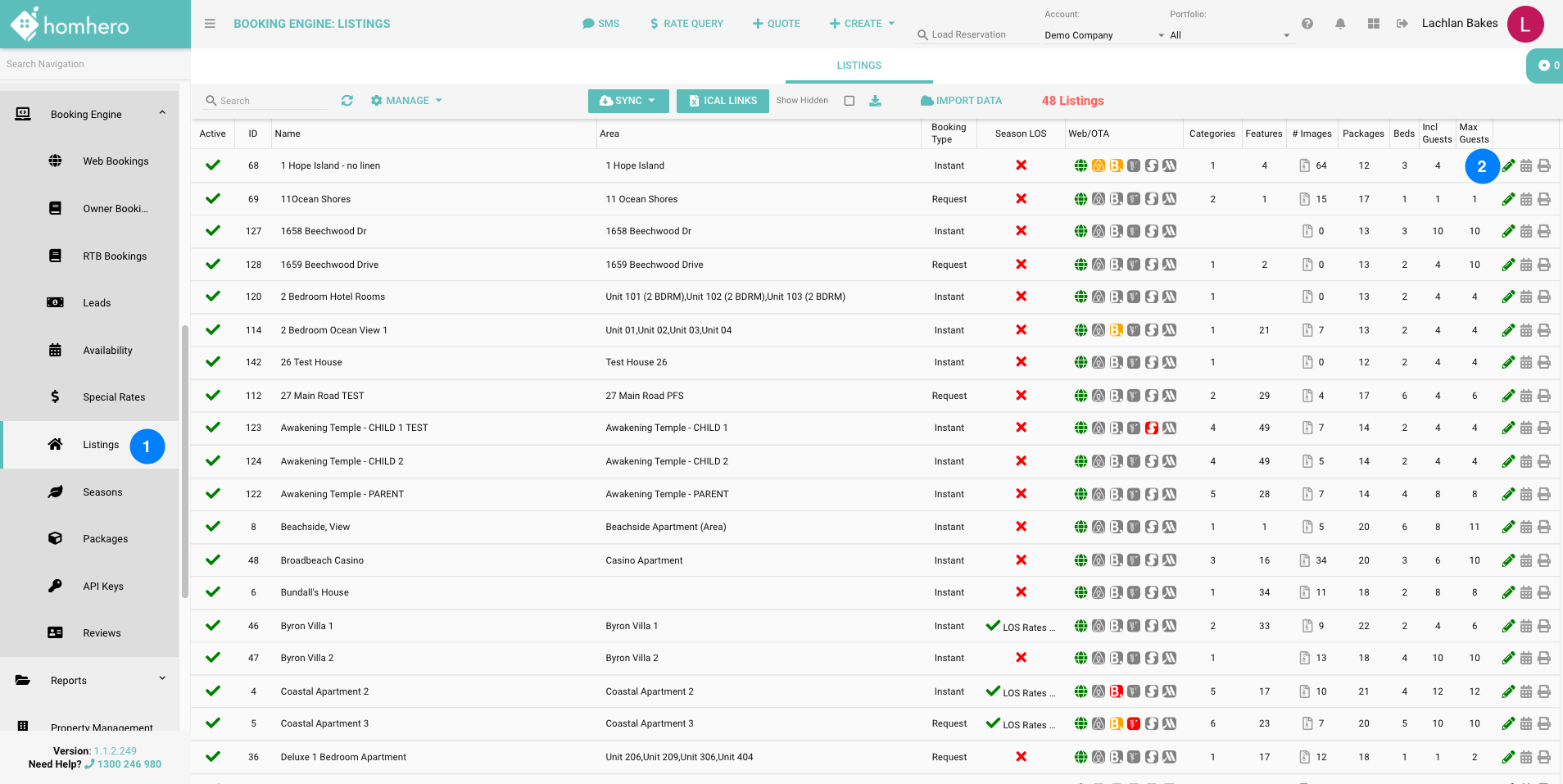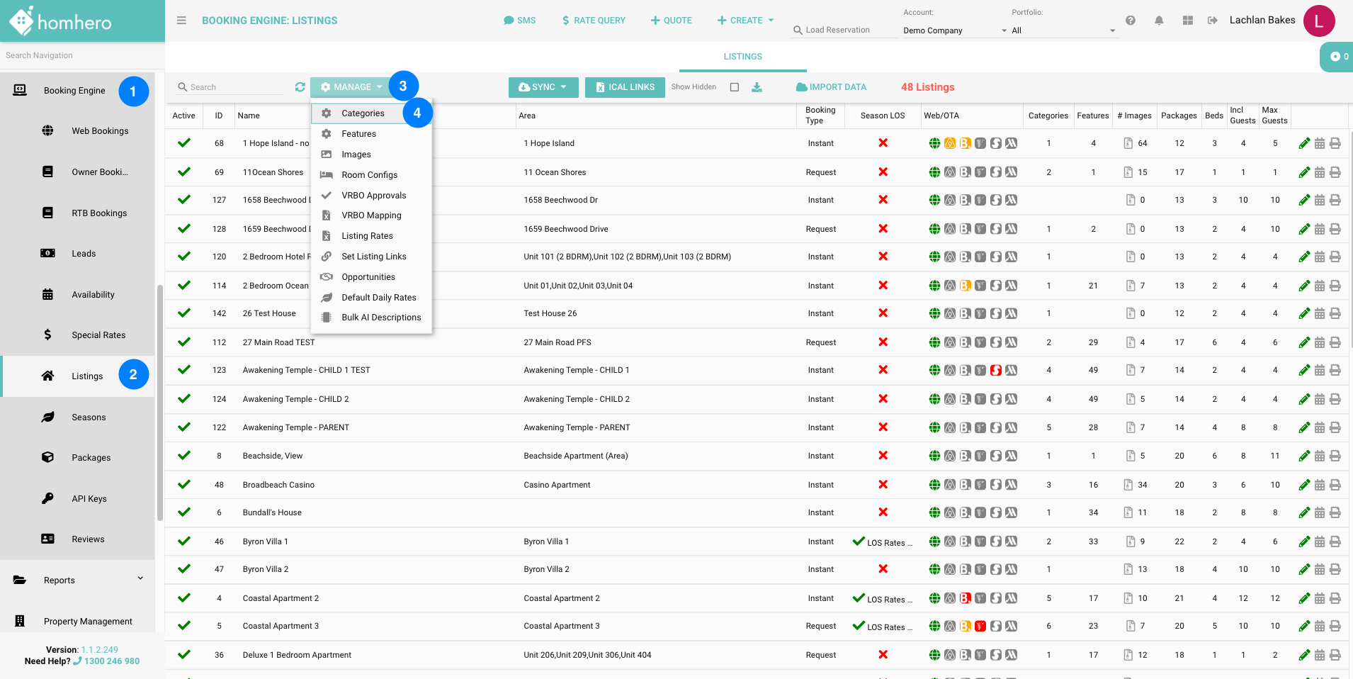 - Click on Booking Engine and then Listings, from the left hand side menu in Homhero.