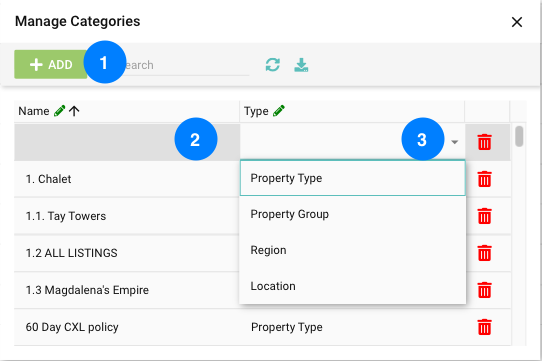 Categories provide a structured way to group properties so they can be managed collectively across the system. By assigning properties to a category, you can efficiently configure rates, special rates, seasons, listings, packages, and website display settings at scale.