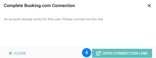 - You will be presented with a button to link your account after successfully logging into your Booking.com admin portal. Click Open Connection Link.