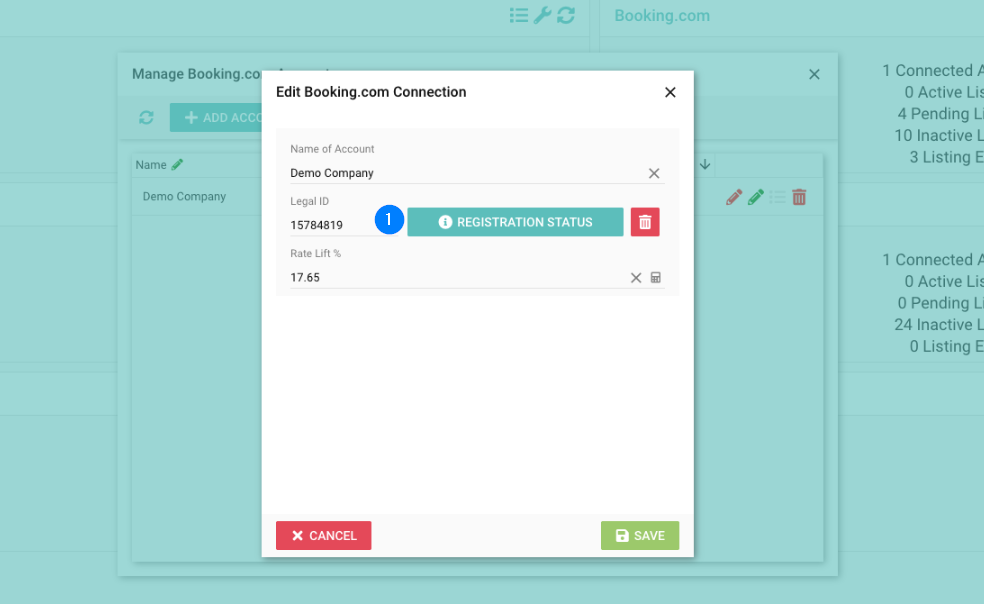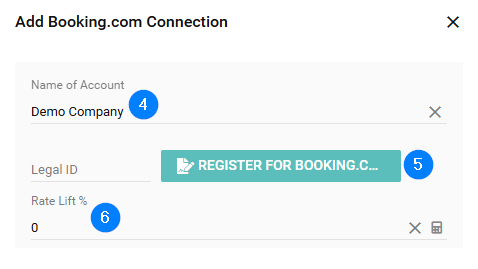 - Legal ID - This has been updated so you cannot edit this field manually, click Register for Booking.com to proceed with the new