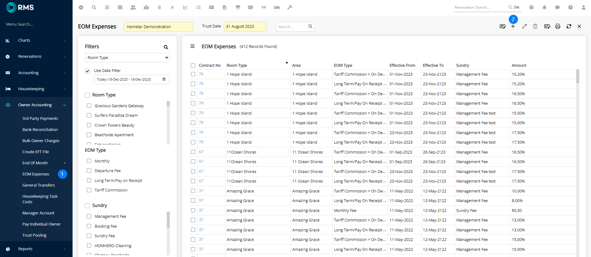 - Tariff Commission on Departure - This EOM Expense is how much commission you are charging your owners for each booking on departure