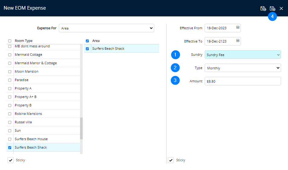 - Click Save/Exit to complete your EOM Expense setup for this Property.