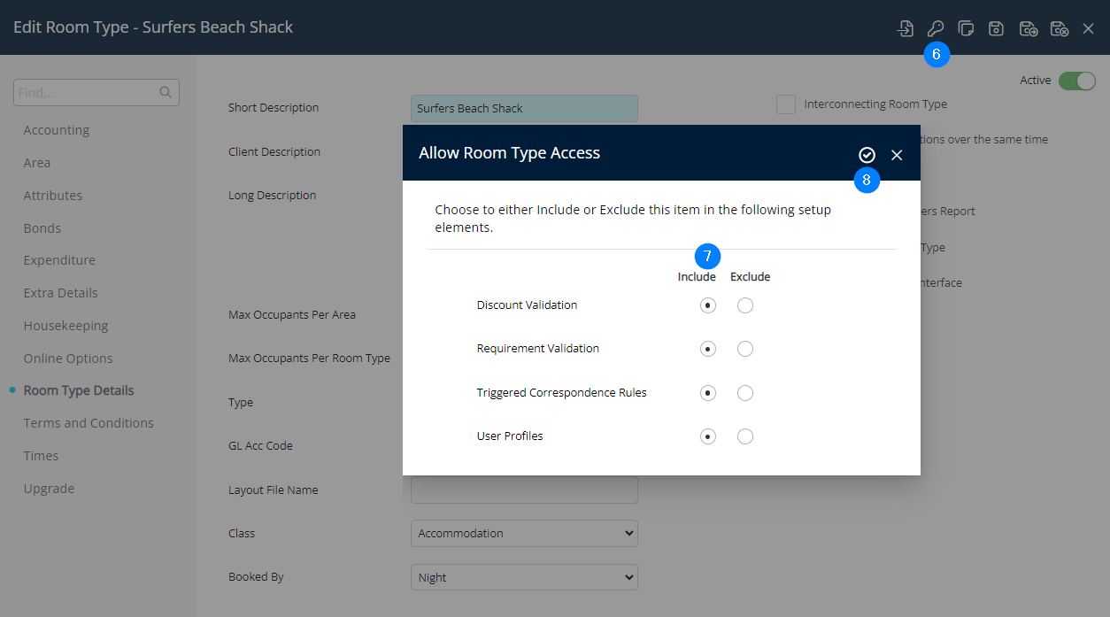 - After selecting Save, an Allow Room Type Access pop-up will appear. If you exit out of these settings, you can re-open them by clicking the 'Access' button next to the Inactive checkbox