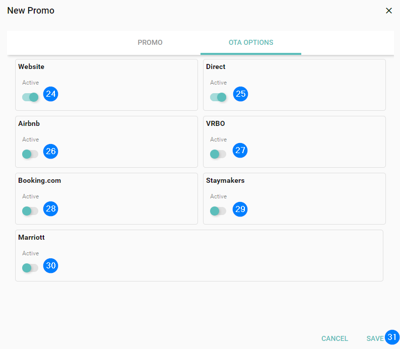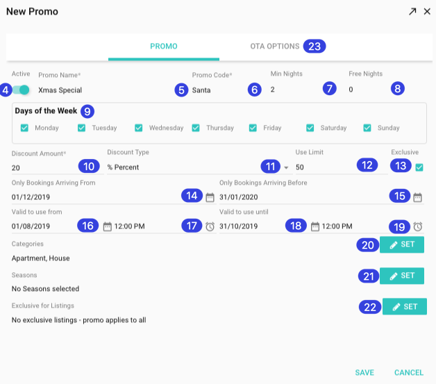 - Use the calendar icon to select a date of when the Promo Begins or if the guest can stay for any date period leave blank.