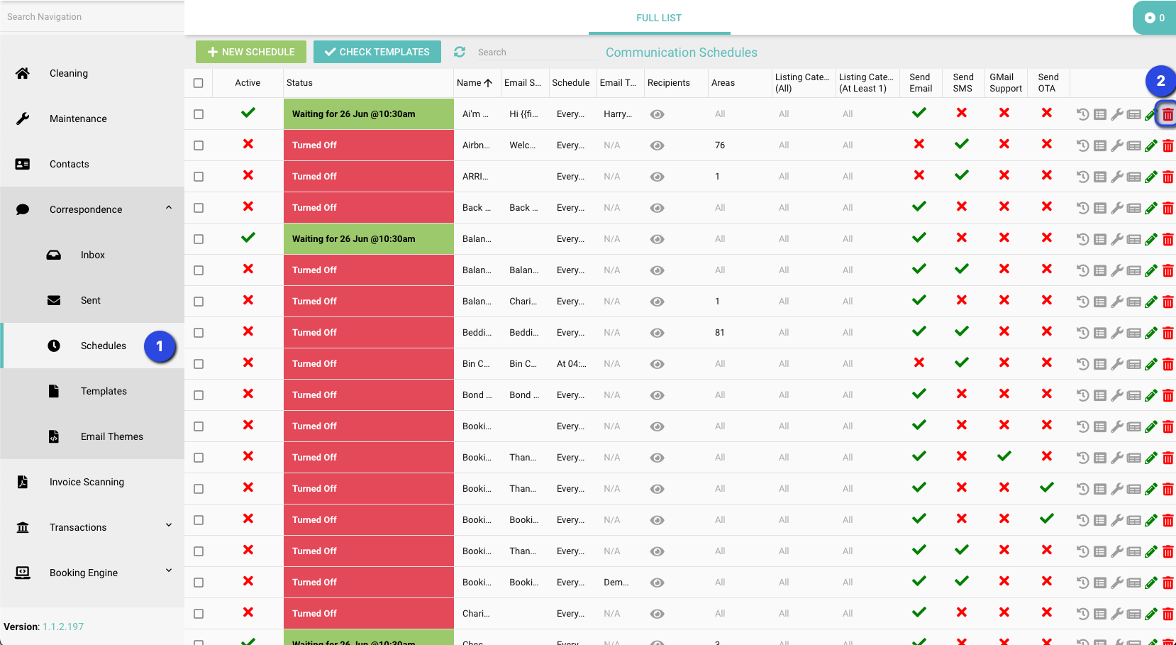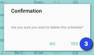 - Click the red bin icon on the right-hand side to delete the schedule.