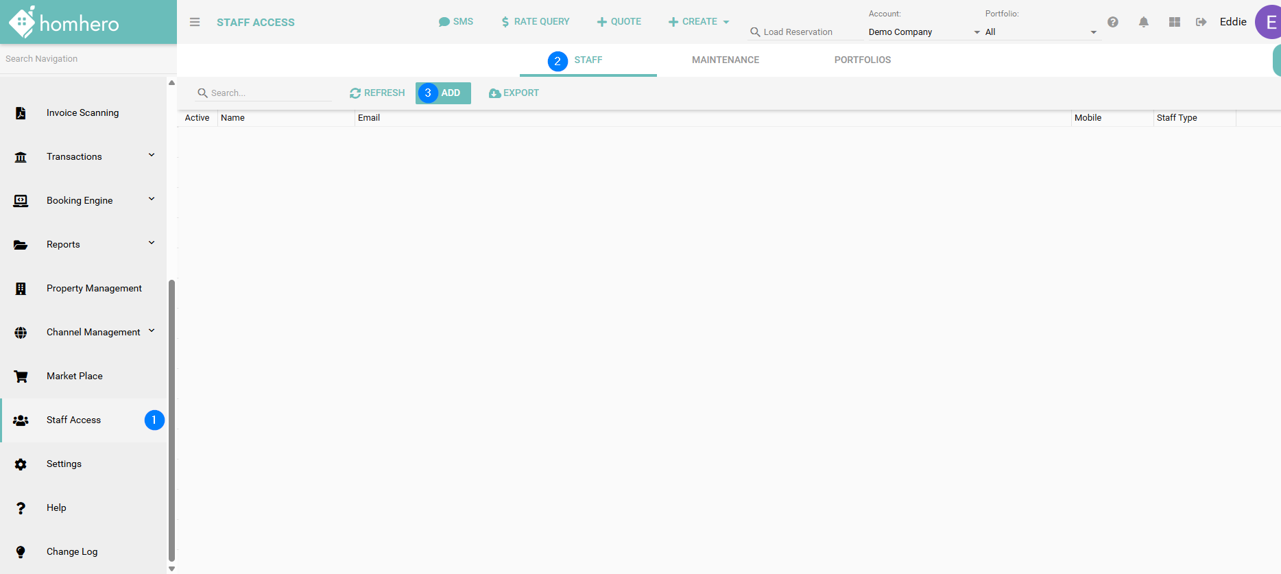 This article will explain in a few steps how to setup a new staff member's access in Homhero.