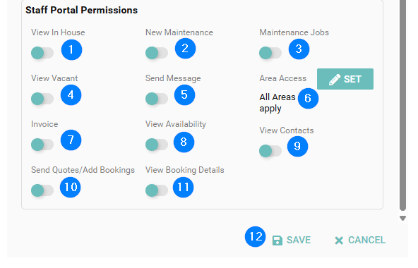 - Enable the Maintenance Jobs toggle to allow access to view all maintenance jobs assigned to this staff member.