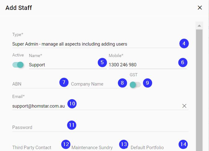 This can only be completed by Homhero users with a Super Admin user profile as per below: