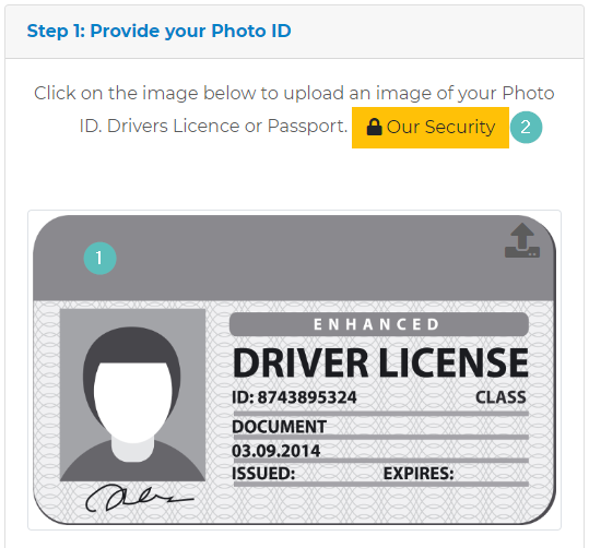 - Click on the image below to upload an image of your Photo ID. Drivers Licence or Passport.