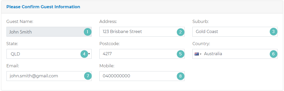 - Guests Name this pulls through from the reservation and the guest cannot change this from here.