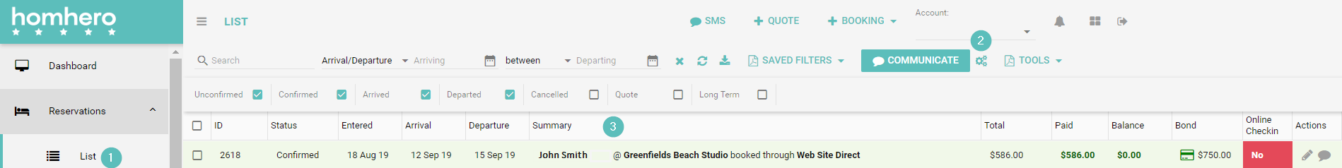 means these columns are not appearing, clicking this icon will make this column appear on the reservation list