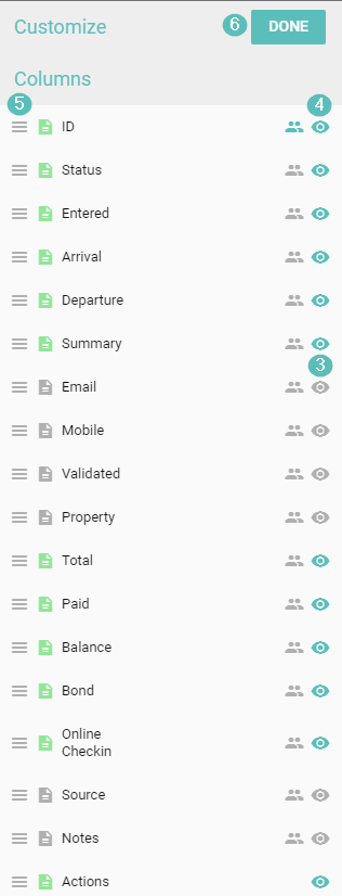 means these columns are already appearing, clicking this icon will make this column disappear from the reservation list