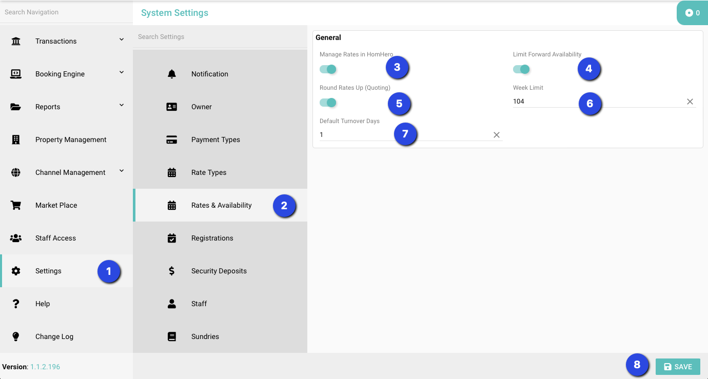 Note: RMS always sends us at least 2 years of availability (104 weeks), therefore if you are setting the Week Limit to 52 weeks this can lead to issues with incorrect availability showing in Homhero for dates in advance. Homhero recommends to set the Week Limit default as 104 weeks to alleviate any availability issues that arise after you have gone live. - Enter in the number of Default Turnover days. See article here on what a turnover day is and where this can be set if you are only wanting this for a specific listing or season.