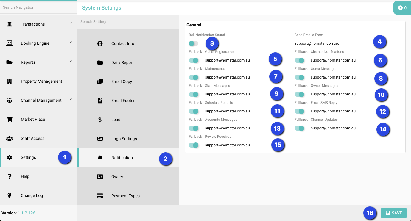 - If any Email Notifications are empty and the Fallback toggle is ON, it will fall back to the email address listed in Contact Info.