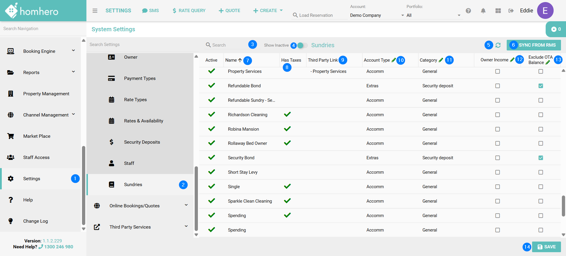 This article will explain where to locate the list of your RMS Sundries via Homhero. Sundries are required in Homhero for the setup of OTA Commissions, Packages, Security Deposits, Credit Card Fees and to pay your Third Party Clients (Creditors) using the Invoice Scanning tool or Owner Bulk Charges.