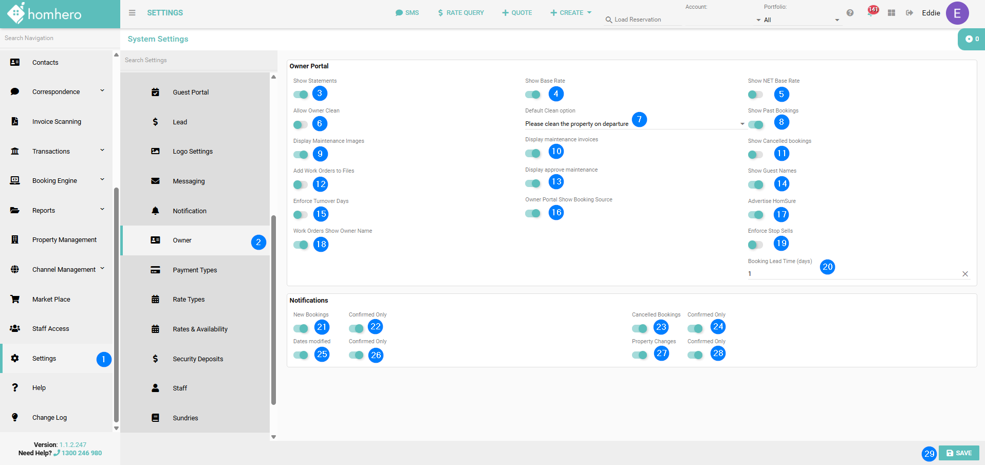 - Owner Portal Show Guests Names - Turn this toggle on to allow owners to see the guests name e.g. P Sherman.