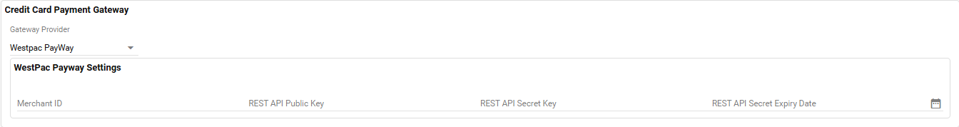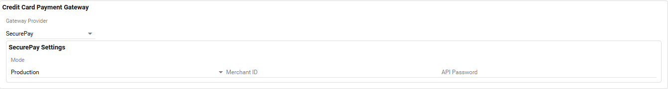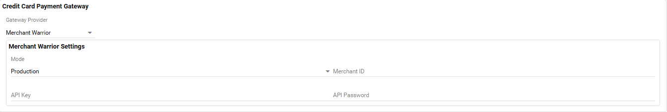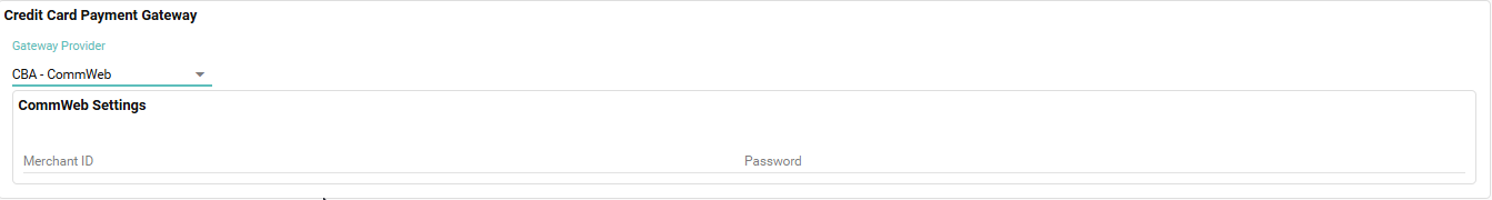 - Click the drop-down arrow to select your Payment Gateway Provider - Each gateway provider will have a different set of instructions that need to be entered here, including an ID and a Password.