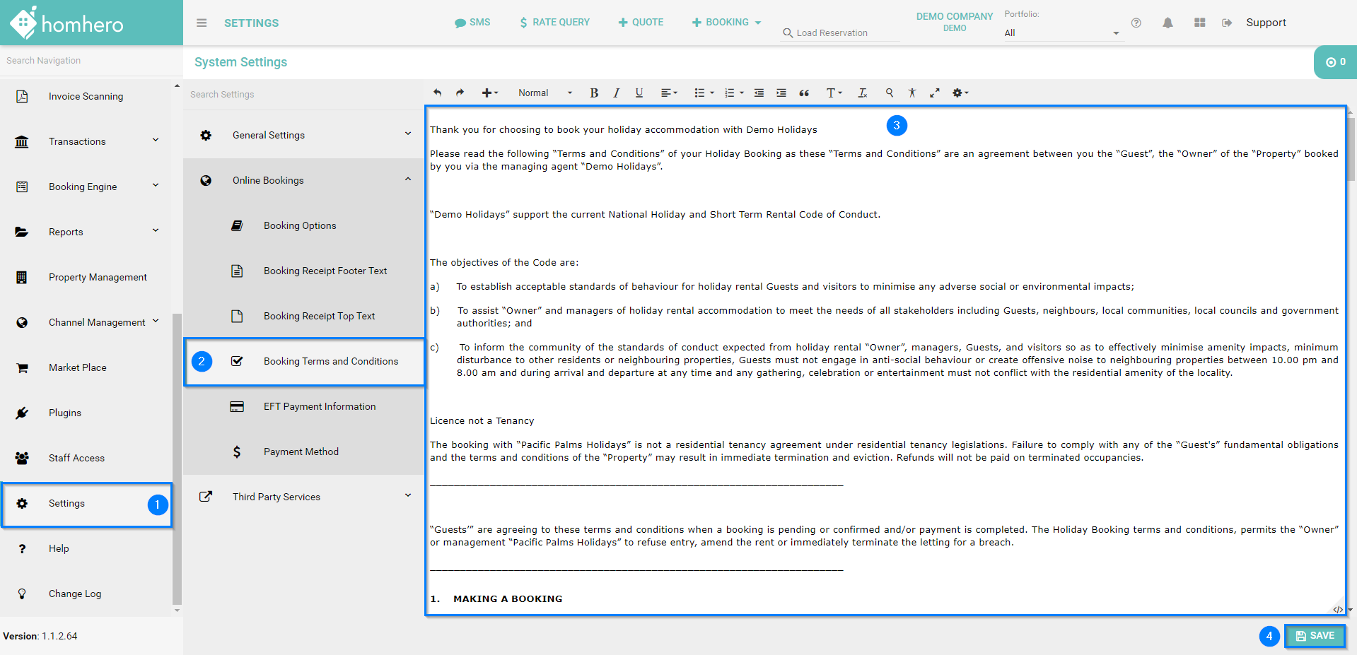 - Enter in your Booking Terms and Conditions.