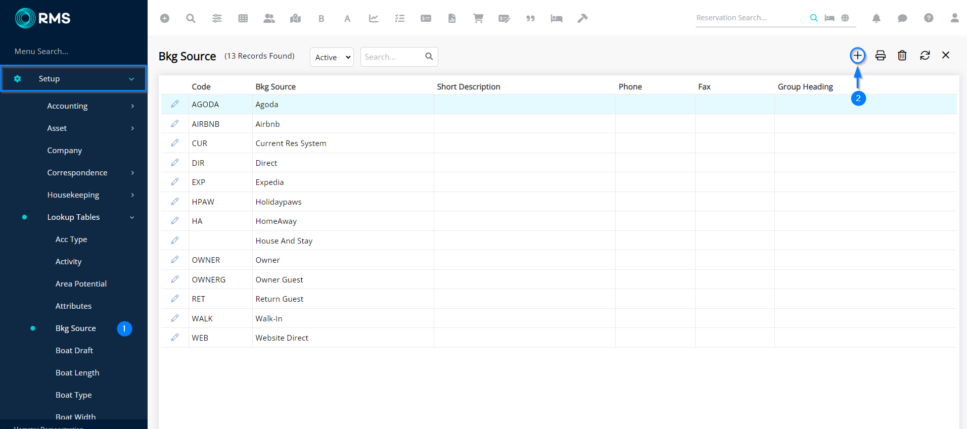 - Select Setup > Lookup Tables > Bkg Source from the side menu