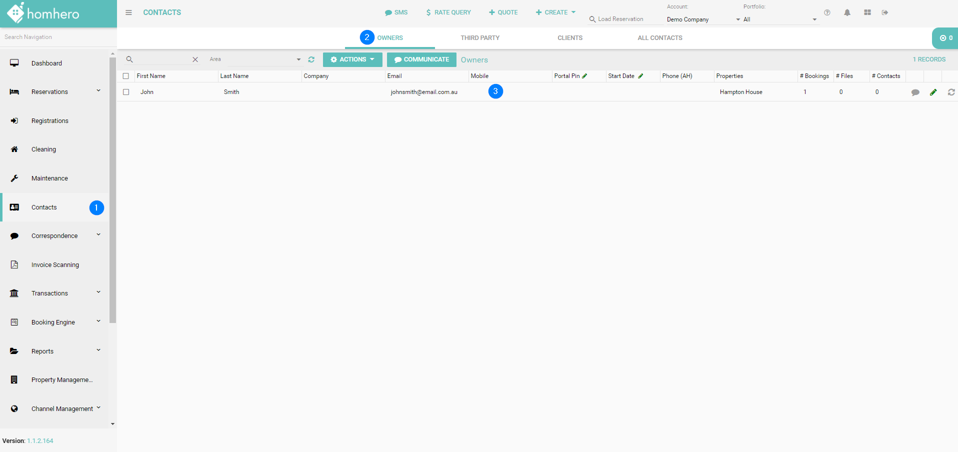 - Click Contacts from the Homhero side menu
