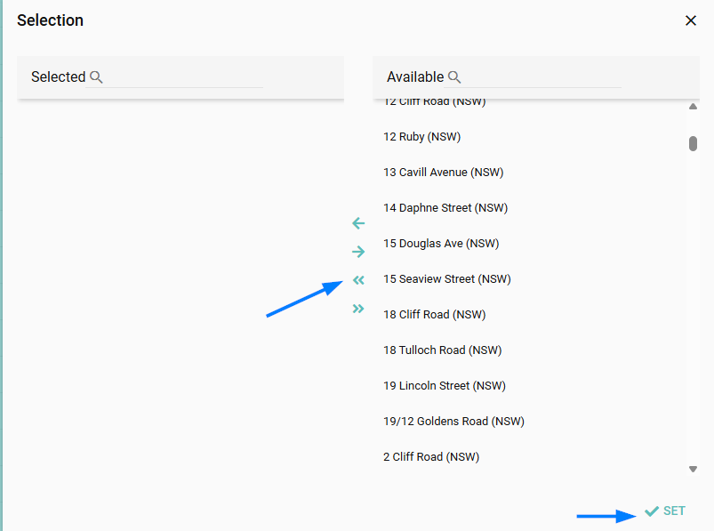 4. Select Set in the Areas section and move all the statements to the left hand side