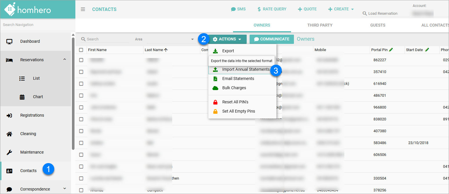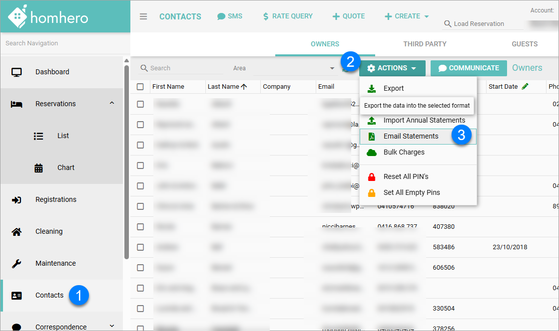 - In Homhero select Contacts from the menu