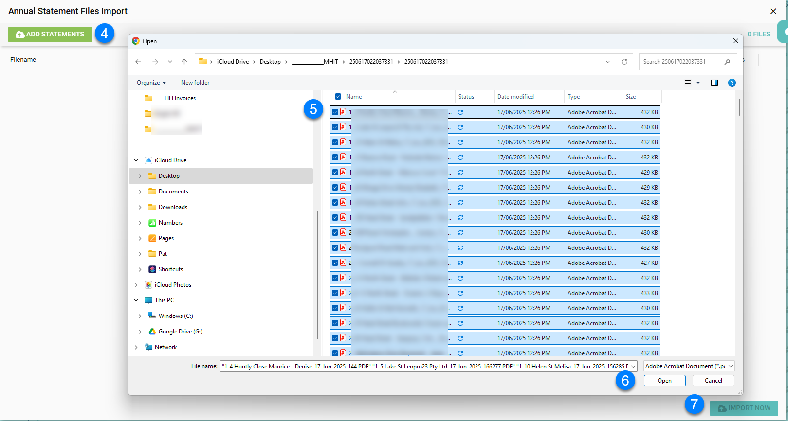 7. Click Import Now - Click No to the pop up box stating whether you want to import more statements