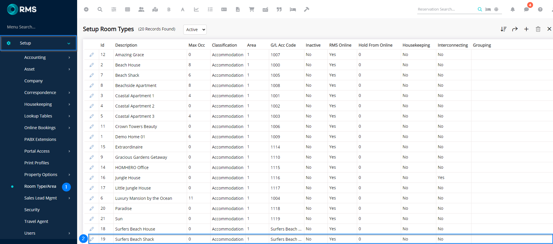 - Click the 'Edit Pencil Icon' on the Room Type/Area to open it