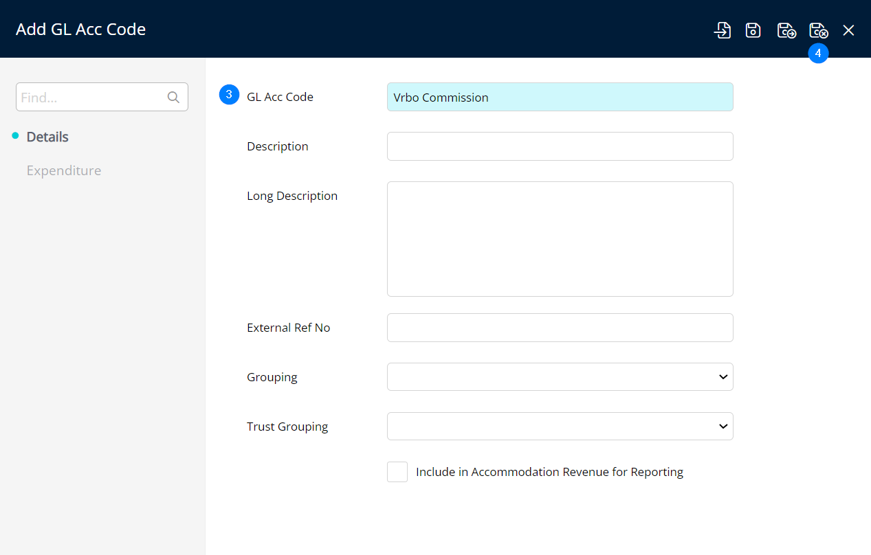 - Select the 'Vrbo Commission' GL Acc Code made in the previous step