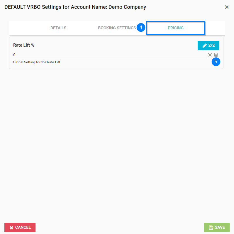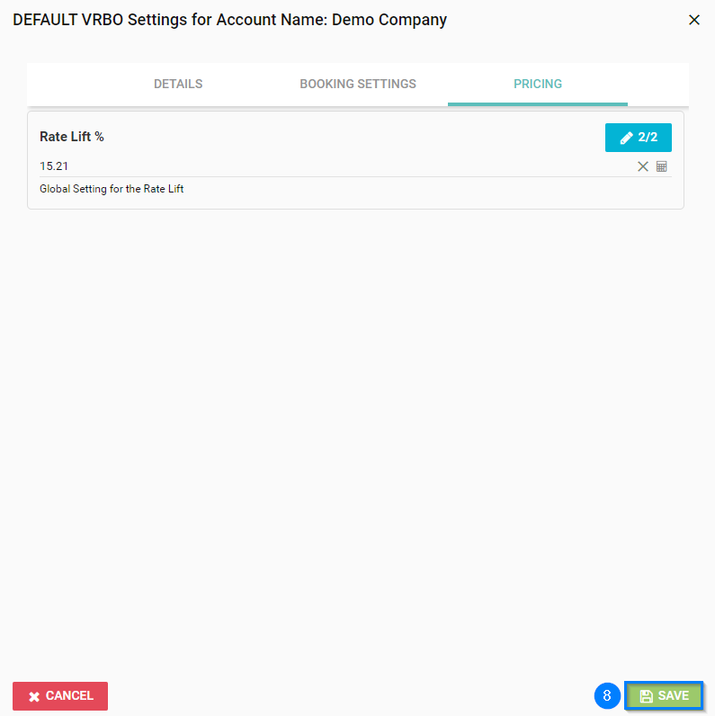 - Click the green edit pencil to open your Default Vrbo Settings