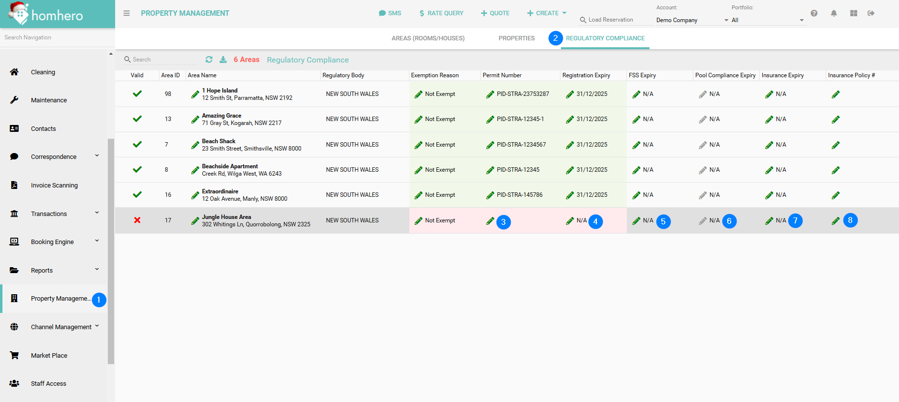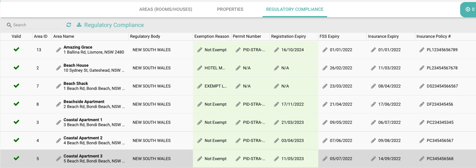 The Regulatory Compliance feature is only supported for NSW and WA properties.