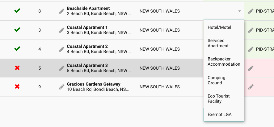 - If you have a property that is exempt from the STRA regulations, click in the Exemption Reason space and choose an exemption reason from the following drop-down options: