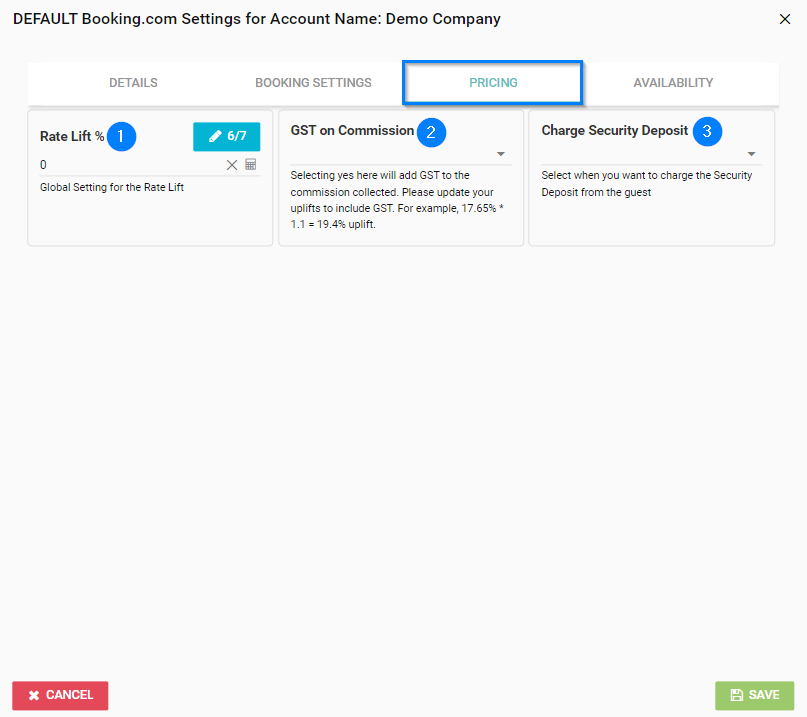 Rate Lift - This is where you will need to setup a Rate Lift to cover any commission charged from Booking.com