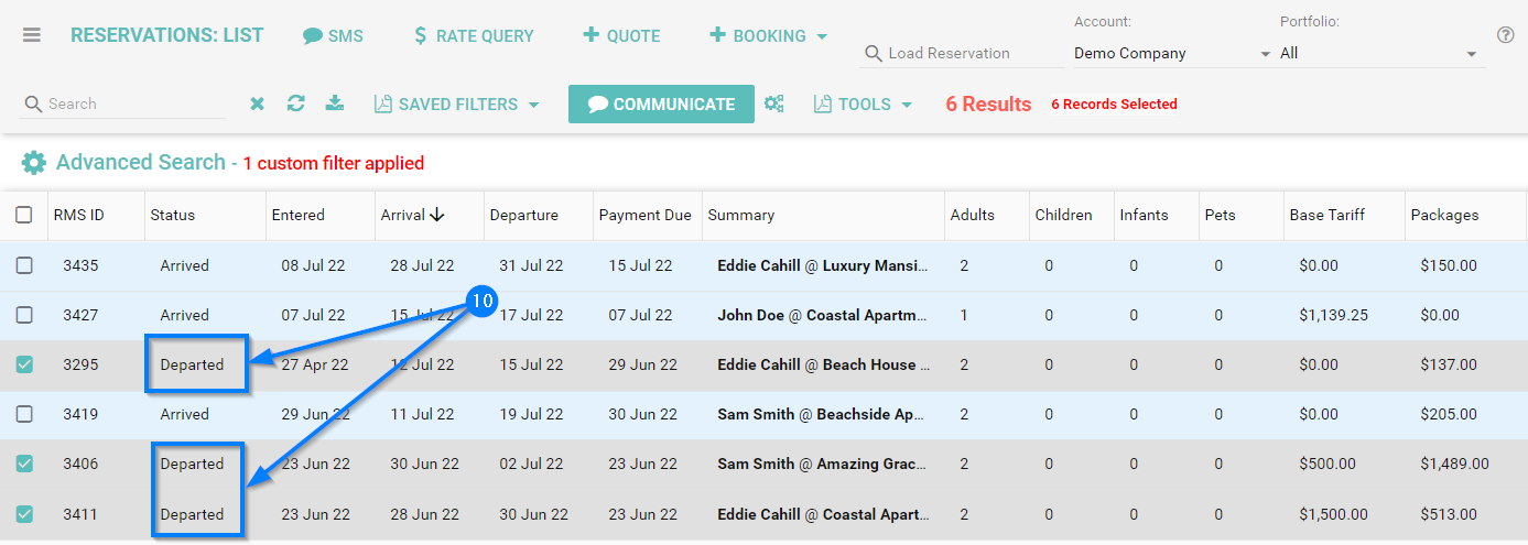 - Select the reservations you would like to update the booking status for