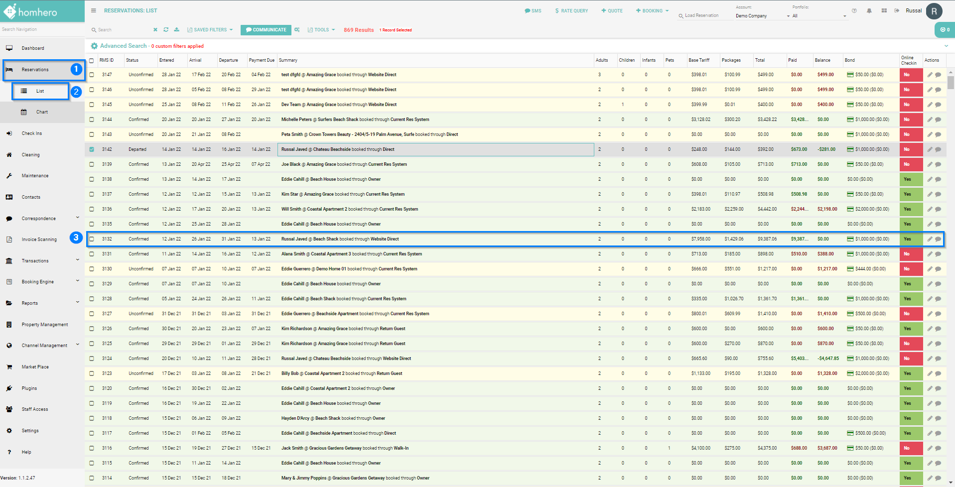 - Click Reservation from the HomHero sidebar