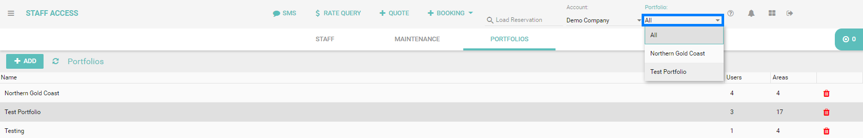 If your Staff Access is linked to multiple Portfolios you will be able to change your Portfolio from the Portfolio drop-down in the top right hand corner of your Homhero account.