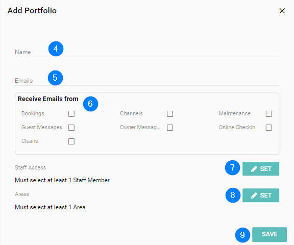 - Name - Enter the name of the Portfolio. This could be a location, office or staff name etc.
