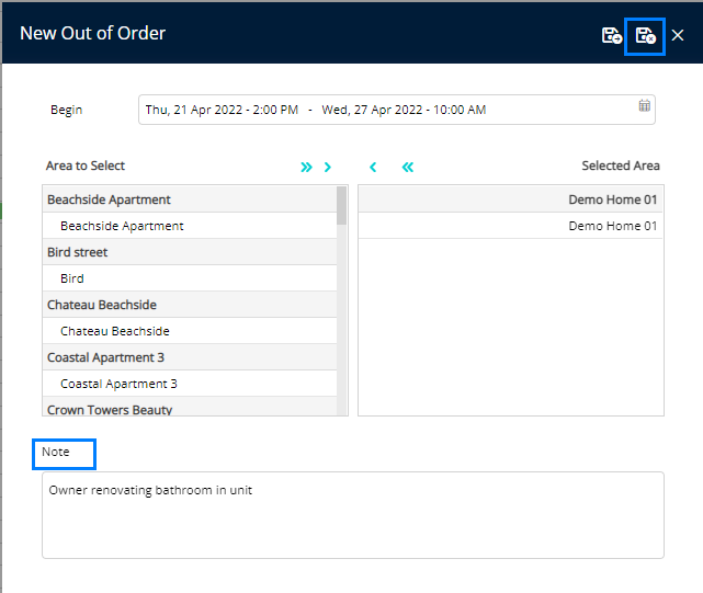 - From here you can adjust the dates as required. You are also able to add in a Note as to what the maintenance block is for. There is the option to add the Maintenance Block for another listing if the dates are the same. Once complete, click Save/Exit.